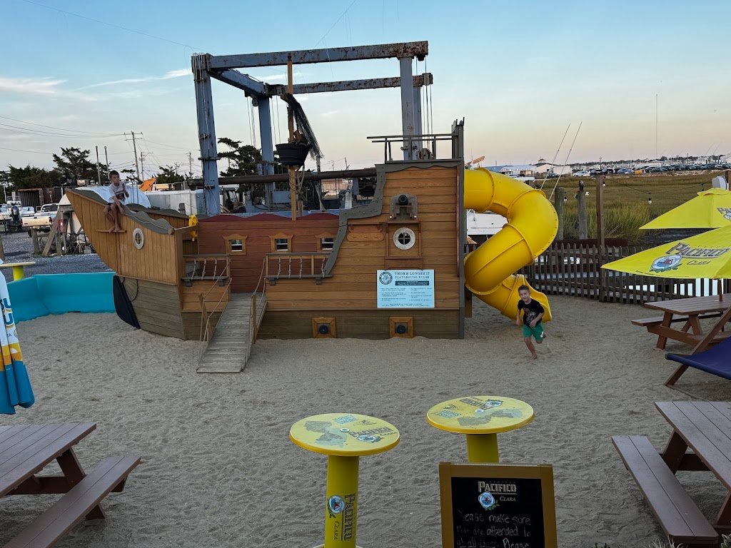 Family & Fun: Parents can sip on famously strong mixed drinks or frosty frozen margaritas while the kids conquer the massive pirate ship playground nestled in the sand.